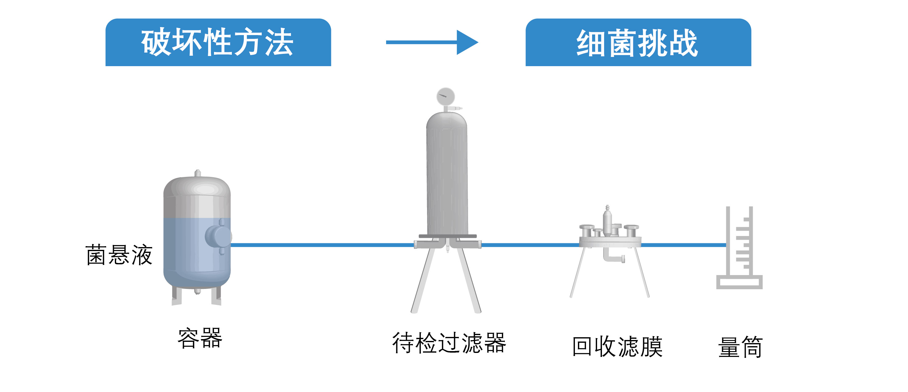 是指直接进行细菌挑战,使用至少达到10⁷CFU/cm²过滤面积浓度的缺陷假单胞菌 (P. diminuta) 进行挑战,确认待检过滤器是否可以产生无菌滤出液。